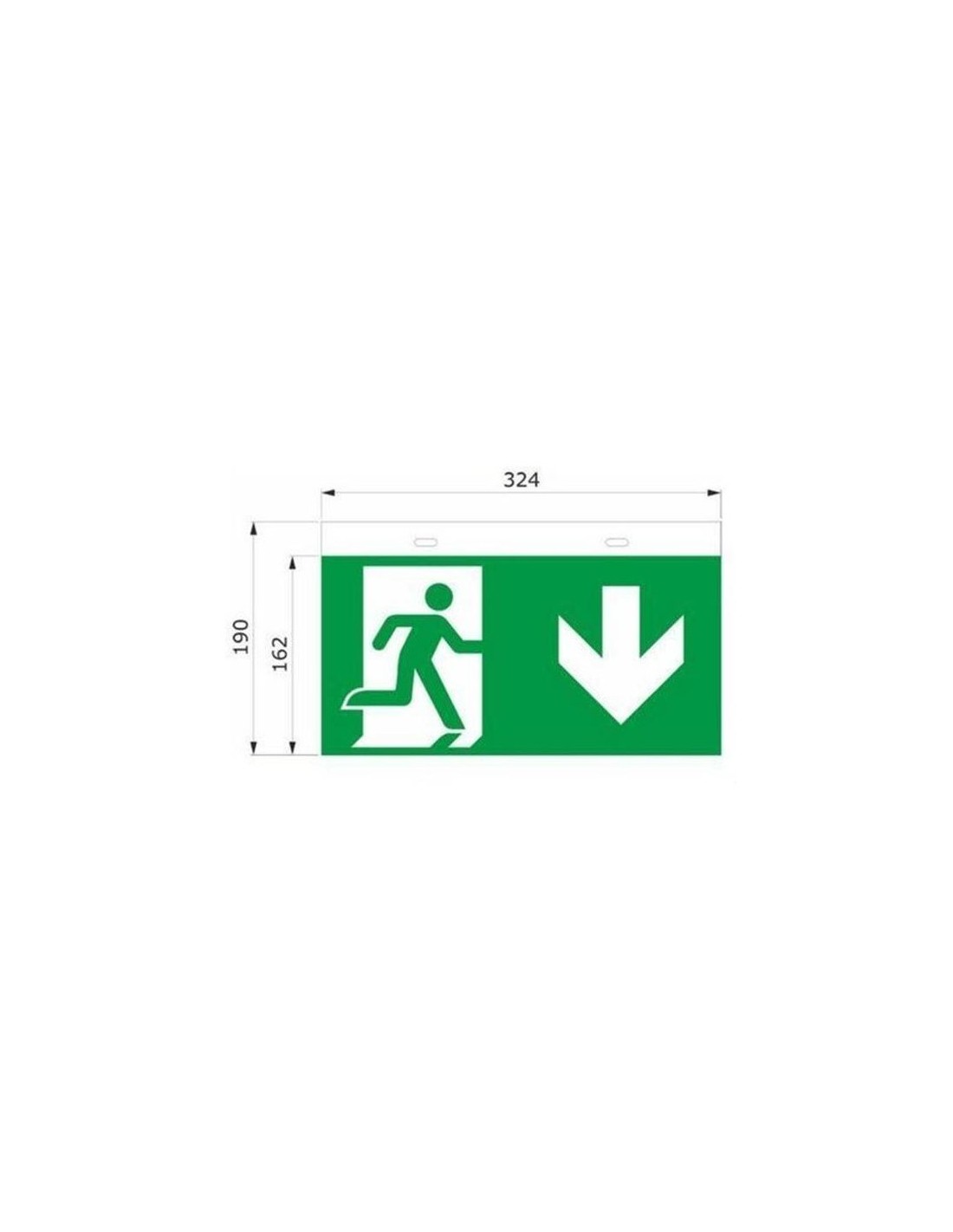 PLACA SEÑALIZACIÓN BANDEROLA HYDRA FLECHA ABAJO. PLACA DE SEÑALIZACIÓN BANDEROLA EN METACRILATO SERIGRAFIADO. RTD: 324 X 162 MM. APTOS PARA CUMPLIR LA NORMA EN ISO 7010. NECESITA PARA SU COLOCACIÓN UNA CAJA DE ENRASAR EN TECHO (KET HYDRA).